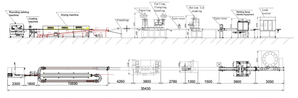 This can making production line is designed for the automatic production of 10-25L conical pail,